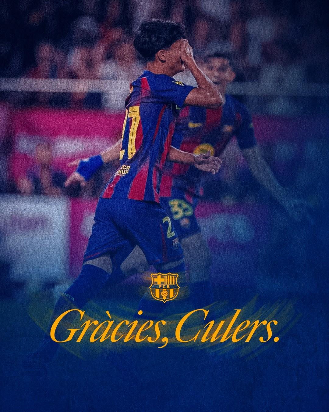 虽然今天我选择了一条不同的道路,但无论身在何处,我都会像其中一员一样继续支持和为你们加油。巴萨和拉玛西亚不仅是我人生旅程的一部分,它们将永远活在我心中。谢谢你们的一切。