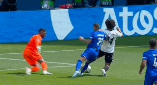 第53分钟,菲尔克鲁格从侧面撞倒拉比奥,翁达夫夺得球权后低射破门,但主裁判观看了回放后判罚德国队犯规在先,进球无效。