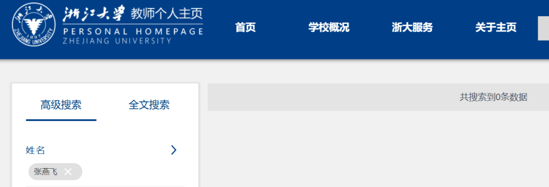 再来看看浙大的公开资料。你搜一下,张燕飞的资料几乎是空白的。